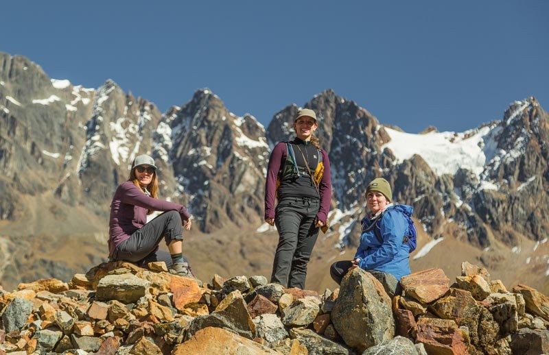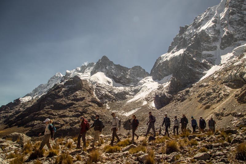 Then we have the most challenging part of the ascent, it is the conquering the mountain switchbacks to get on the Soyrococha campsite where our crew and our chef wait for us to have our delicious lunch, as soon we finish it, the last part of the ascent leads us to the pass, the highest point on the trek (15,213’ / 4,636m), From this place we appreciate the mountains and glaciers of Salkantay , Pumasillo, Padreyoq and Humantay.. The journey continues with a dramatic descent through fields of large boulders and natural stone formations often shrouded in fog.